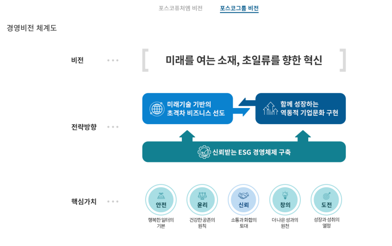 - 📌 핵심 가치: 안전, 상생, 성장, 변화 주도 등 포스코 그룹의 가치를 기반으로 한 책임감 있는 경영
