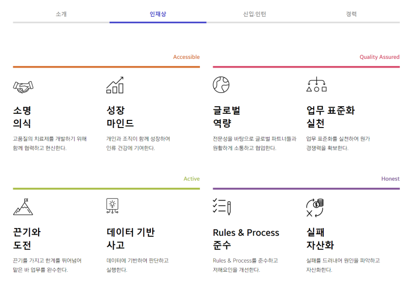 - 인재상: 창의적이고 혁신적인 인재, 끊임없이 배우고 성장하는 인재, 협력적인 자세를 갖춘 인재, 윤리적인 책임을 다하는 인재