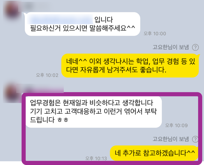 - 문제 해결 과정, 고객과의 소통 등 CS 엔지니어에게 필요한 역량을 구체적으로 어필합니다.