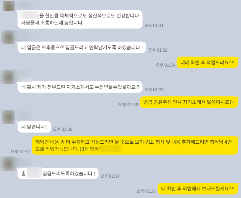 >> 초안 작성 및 꼼꼼한 첨삭/대필 진행