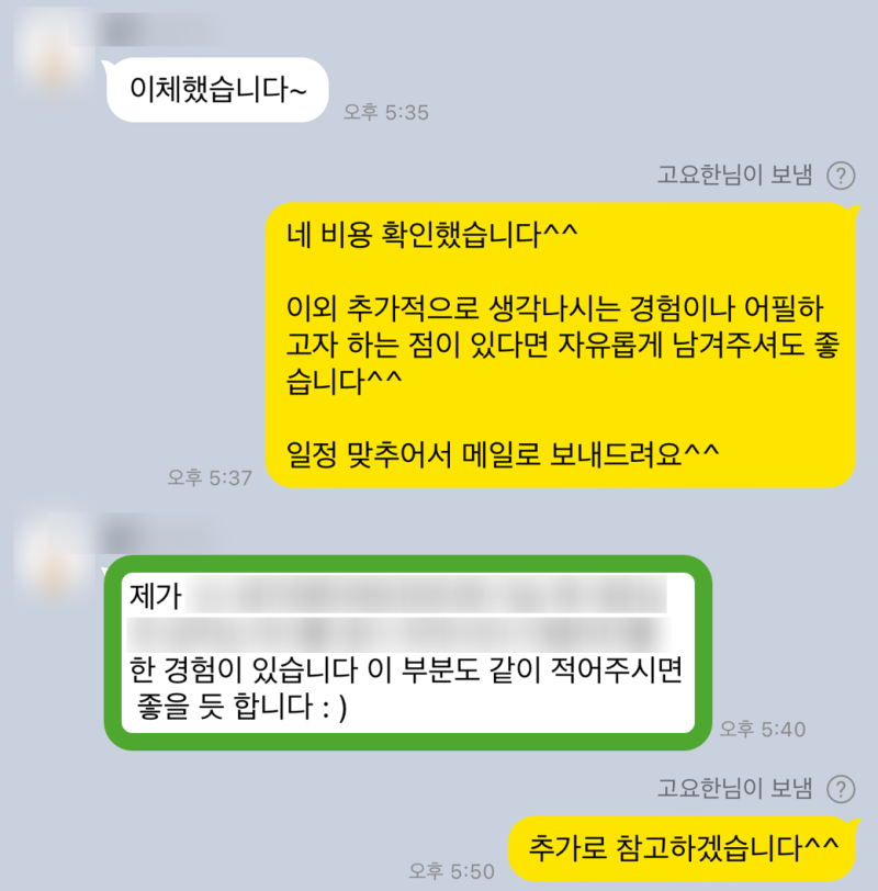 - 자기소개서 첨삭: 문장 표현, 내용 구성, 논리 흐름 등을 개선하여 완성도를 높입니다.