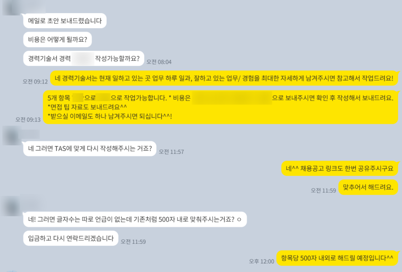 >> 결제 및 자료 공유: 이력서, 레퍼런스 등 필요한 자료 전달