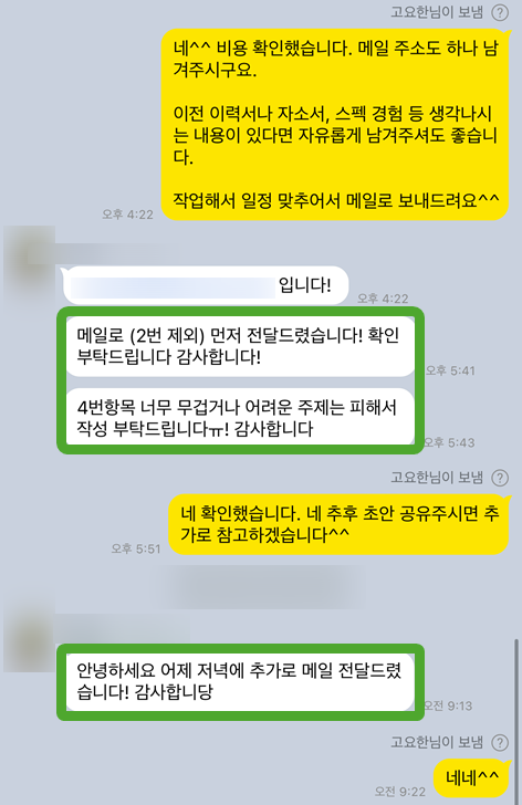 5. 최종 검토 및 피드백: 완성된 자기소개서를 최종 검토하고, 추가적인 조언과 피드백을 제공하여 완벽한 결과물을 완성합니다.