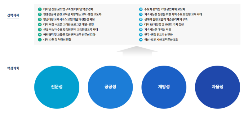 📈 한국방송통신대학교 대학원 분석자료 (핵심가치, 비전, 인재상, 각종 사업 등)