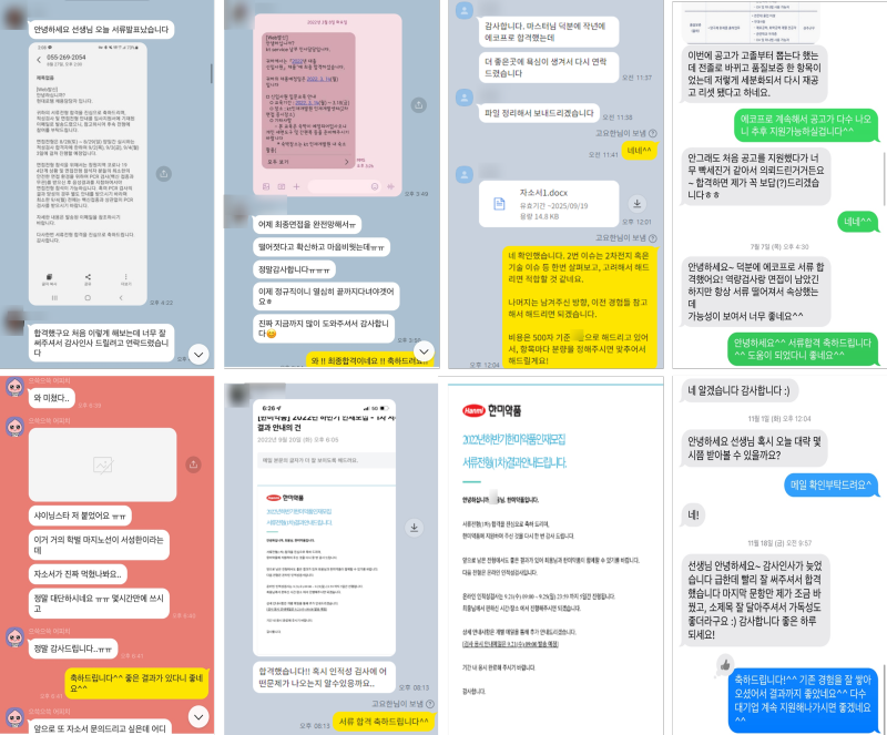안녕하세요! 👋 오늘도 취준생 여러분의 **서류합격** 소식을 기다리며 분주한 하루를 보낸 자소서 전문가입니다. 제가 직접 컨설팅하며 **수백 건의 대기업, 공기업**은 물론 **중견기업, 중소기업, 공무직** 등 **다수의 합격**을 이끌어냈던 경험을 바탕으로, 매년 **2000명 이상의 지원자분들**과 함께하고 있죠. 📝 특히 **채용공고 분석**부터 **자소서 문항 파헤치기**, 그리고 **합격률 높이는 작성 노하우**까지 아낌없이 공유드리고 있답니다! ✨ 단순히 자소서만 쓰는 것이 아니라, **경력기술서, 직무수행계획서** 작성은 물론 **면접 컨설팅**까지 **취업의 모든 과정**을 함께하고 있어요. 궁금하신 점이 있다면 언제든 편하게 물어보세요! 😊