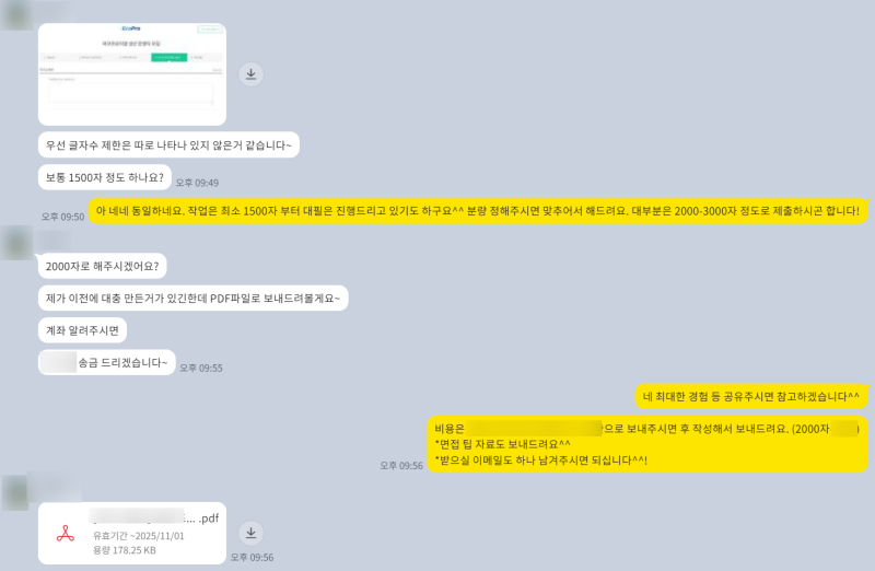 > 피드백 및 수정: 지원자분과 소통하며 완성도를 높이는 과정을 거쳐요. 합격까지 제가 함께합니다! 🤝