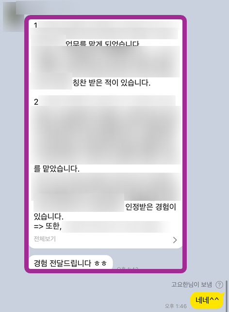 중견 자소서 첨삭 대필 합격후기